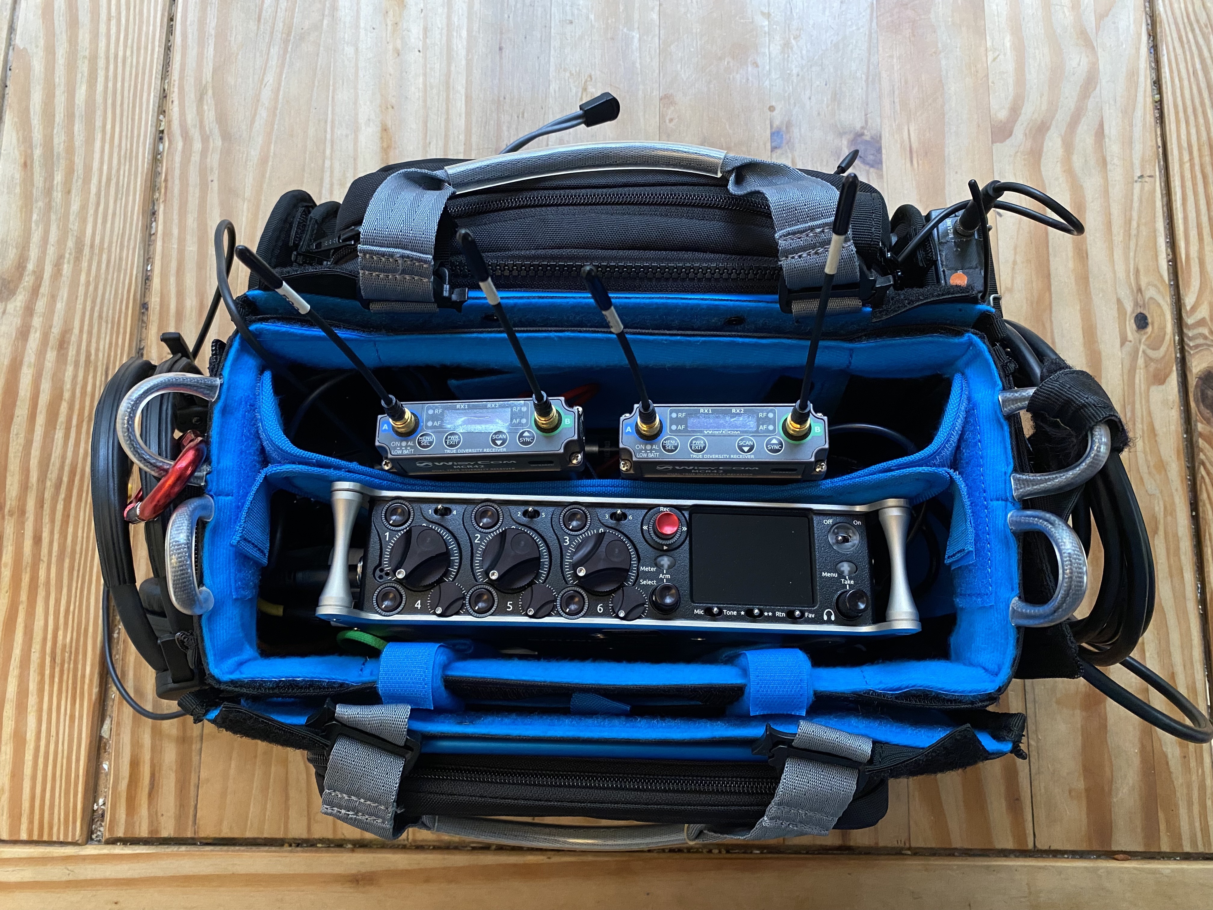 - 6 channels of Wisycom radio mics with Sanken Cos 11 lavs